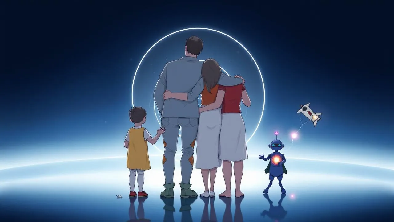 Beschreibung: Ein Außerirdischer und sein Roboter kommen auf die Erde, um die Menschheit zu retten, was die Themen Familie und das Überleben der Menschheit thematisiert.